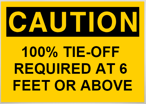 OSHA Caution Safety Sign: CAUTION 100% TIE-OFF REQUIRED AT 6 FEET OR ABOVE 10"x14" Adhesive Vinyl